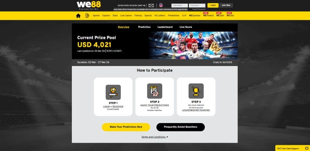 Whether you are tracking your rank on the WEPredict leaderboard or placing a strategic wager on the weekend’s biggest fixtures, WE88 provides the ultimate hub for Malaysian football fans to turn their insights into winning moments.